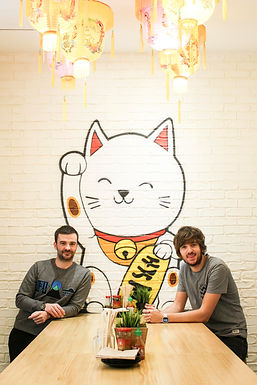 El restaurante es un gusto para los ojos, toda la decoración está pensada minuciosamente con un ambiente que te transporta a otro lugar del mundo. Lo más característico es el gato de la buena suerte en la pared central y el dragón encima de la barra.