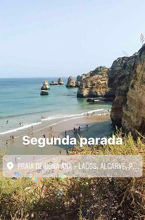 Por la tarde nos fuimos a la Praia Dona Ana que, aunque ya la conocíamos nos encantó tanto el año pasado que decidimos volver a visitarla. Esta playa es muy típica del Algarve con grandes acantilados, formaciones rocosas en el agua y cuevas que aparecen y desaparecen según esté la marea. La arena es peor porque está llena de conchas rotas que te torturan los pies mientras llegas a tu sitio, y digo tú sitio porque en Portugal hay una zona para los mortales que vamos cargados con sombrilla, toalla, cesto etc y otra para los que alquilan sombrilla y hamacas donde no te permiten colocarte. Así que os aconsejo que os compréis cangrejeras tanto para este tipo de playas como para visitar las rocas o las grutas de las siguientes playas. Os aviso desde ya que el 95% de las playas del Algarve (o a las que yo he ido) no tienen duchas para lavarse los pies así que preparad el coche si no queréis tiraros una hora quitando arena como me ha tocado a mí.
